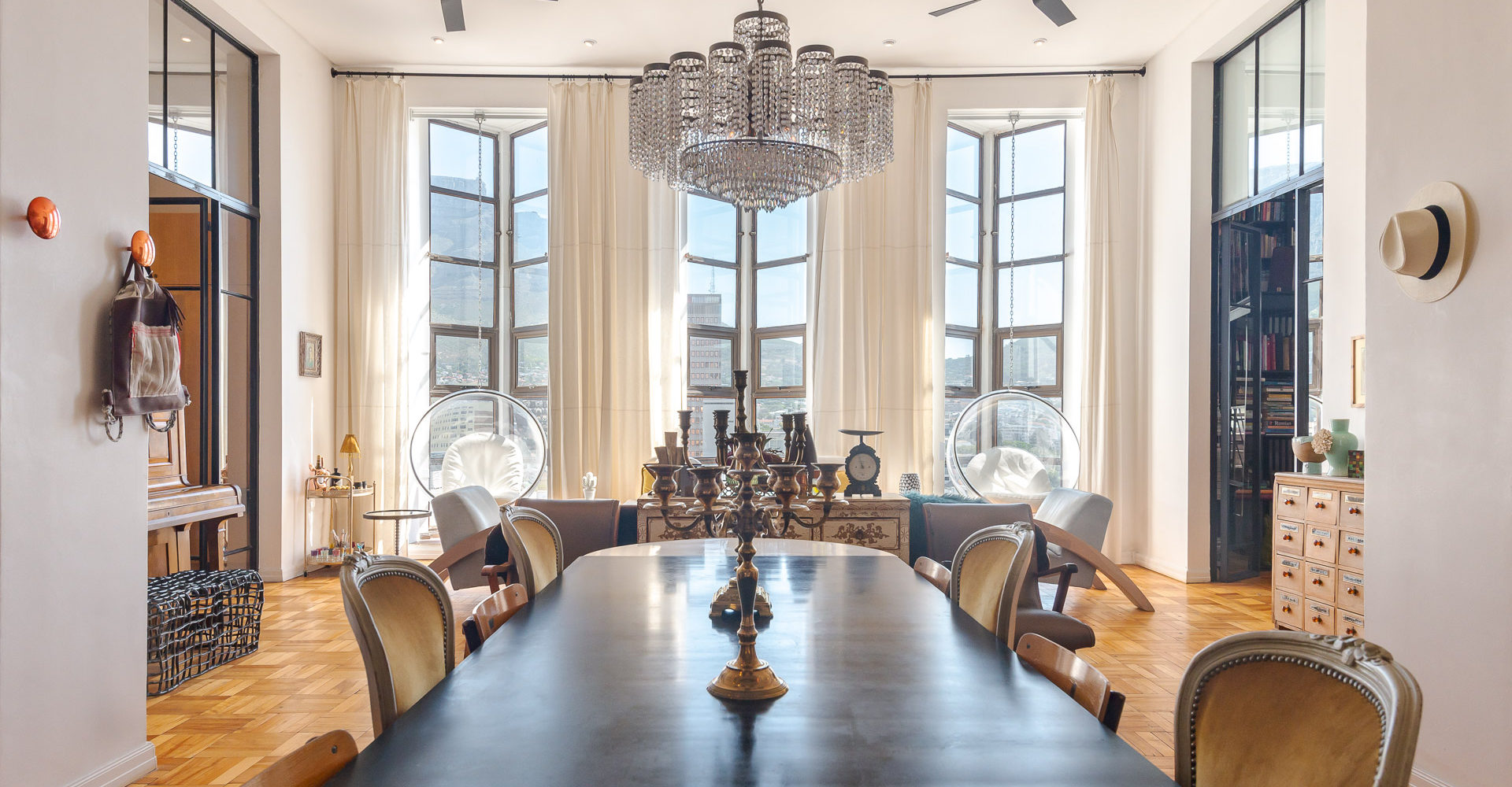Ilze, who owns two apartments in Cape Town city centre, got hold of me asking if I’d come and shoot both her apartments. One in Bree Street and this double-volume, 2 bedroom apartment in Mutual Heights. Exquisite furnishings and large floor-to-ceiling prismoid windows greet you as you enter the apartment.
